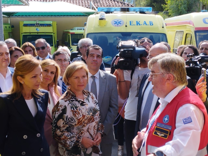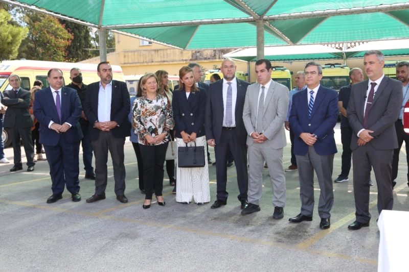 Η τελετή παράδοσης της δωρεάς 20 σύγχρονων και πλήρως εξοπλισμένων ασθενοφόρων οχημάτων προς το Ε.Κ.Α.Β. από την Ένωση Ελλήνων Εφοπλιστών (ΕΕΕ) μέσω του φορέα συλλογικής κοινωνικής προσφοράς της ναυτιλιακής κοινότητας «ΣΥΝ-ΕΝΩΣΙΣ», πραγματοποιήθηκε σήμερα παρουσία του Υπουργού Υγείας, Θάνου Πλεύρη, της Αναπληρώτριας Υπουργού Υγείας, Μίνας Γκάγκα, της Υφυπουργού Υγείας, Ζωής Ράπτη, του Προέδρου του ΕΚΑΒ Νίκου Παπαευσταθίου και της Προέδρου της Ένωσης Ελλήνων Εφοπλιστών Μελίνας Τραυλού.