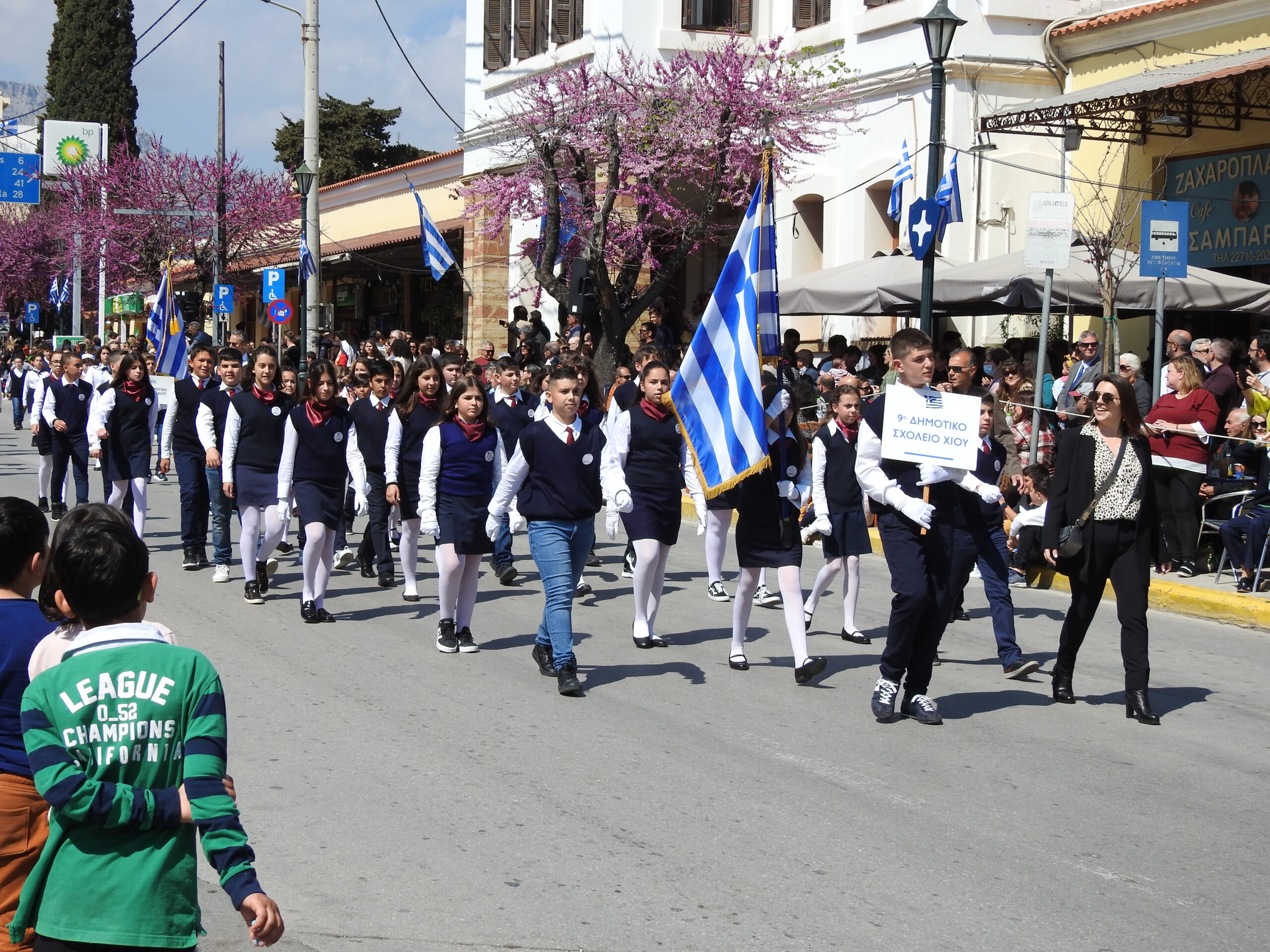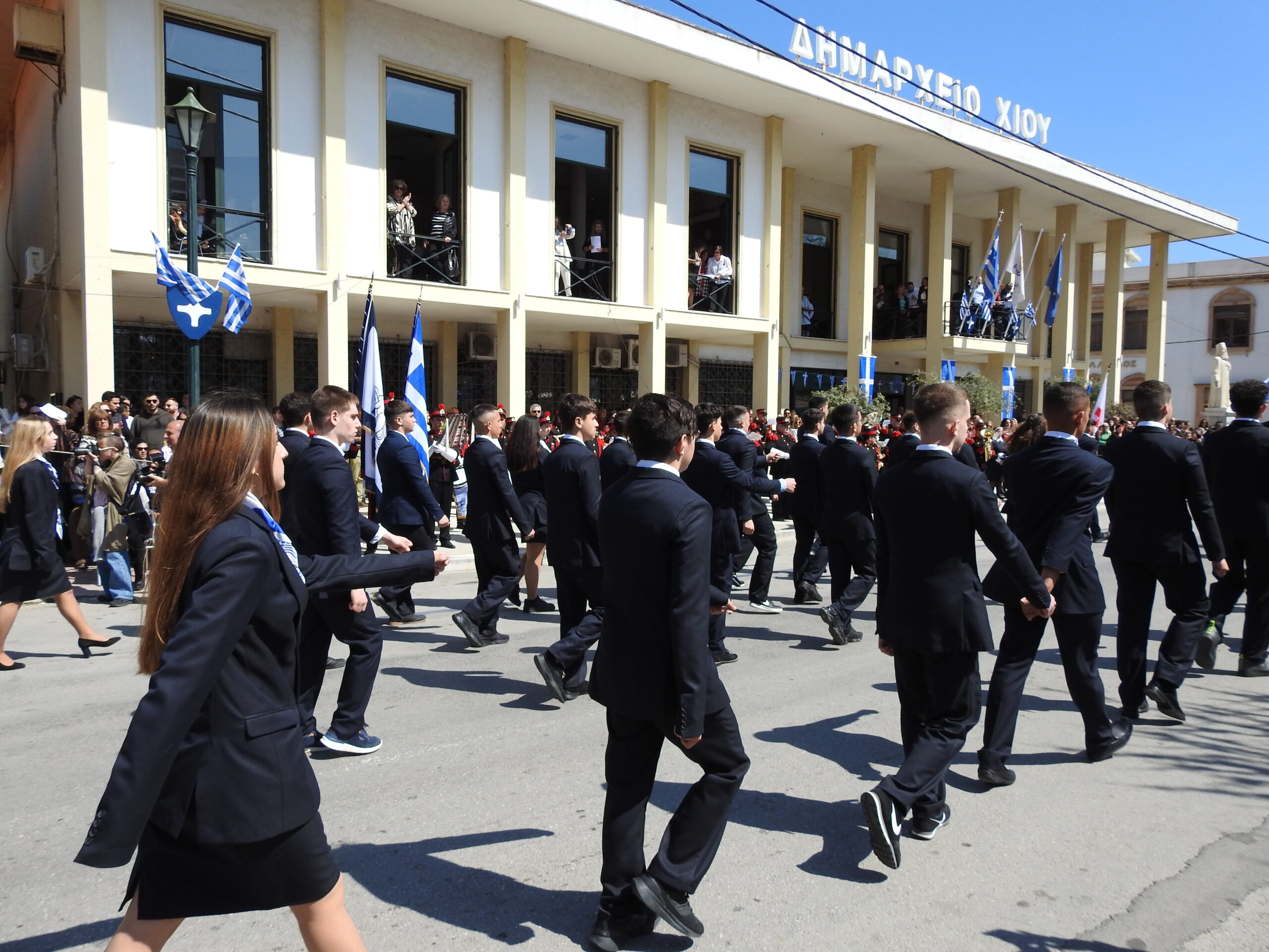 Άνθρωποι όλων των ηλικιών βρέθηκαν εκατέρωθεν της οδού Δημοκρατίας για να καμαρώσουν τα νιάτα της Χίου, τους μαθητές όλων των βαθμίδων, τα μέλη των πολιτιστικών σωματείων αλλά και τους στρατευμένους μας.