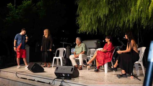 Μετά την προβολή, η δράση μεταφέρθηκε στην πλατεία της Χίου, όπου πλήθος κόσμου παρακολούθησε τη συζήτηση με τους συντελεστές και συμμετείχε ενεργά με ερωτήσεις και παρεμβάσεις. Την εκδήλωση παρουσίασε η δημοσιογράφος Μαίρη Αυγερινοπούλου, η οποία συντόνισε τη συζήτηση και έδωσε τη δυνατότητα στο κοινό να εκφράσει τις απορίες και τις εντυπώσεις του.