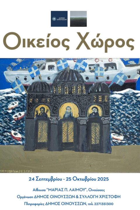 Ο Δήμος Οινουσσών σε συνεργασία με την Συλλογή Χρίστου Χριστοφή εγκαινιάζει την Τετάρτη 24.09.2025 στις 19.30 στην αίθουσα ΣΦΟ «Μαρίας Π. Λαιμού» στις Οινούσσες την έκθεση «Οικείος χώρος», στην οποία συμμετέχουν με έργα ζωγραφικής, 18 σύγχρονοι Έλληνες καλλιτέχνες, από τον Γιώργο Μαυροϊδη (1912-2003) έως τον Βασίλη Γαλάνη (γ.1994).