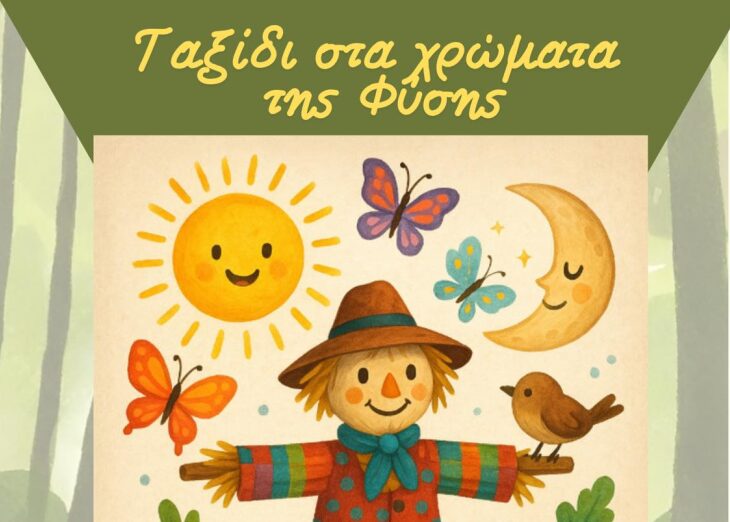 Θεατρική αφήγηση παραμυθιού: «Της φύσης τα παραμύθια». Μια βιωματική αφήγηση με συμμετοχή παιδιών και παιδαγωγών, γεμάτη θεατρικό παιχνίδι, αυτοσχεδιασμούς και φαντασία. Οι ήρωες – ένα σκιάχτρο που θέλει να γνωρίσει τη θάλασσα, ένας δράκος που απειλεί το δάσος και πολύχρωμες πεταλούδες – ξετυλίγουν μηνύματα ελπίδας, περιβαλλοντικής ευαισθησίας και μαγείας.