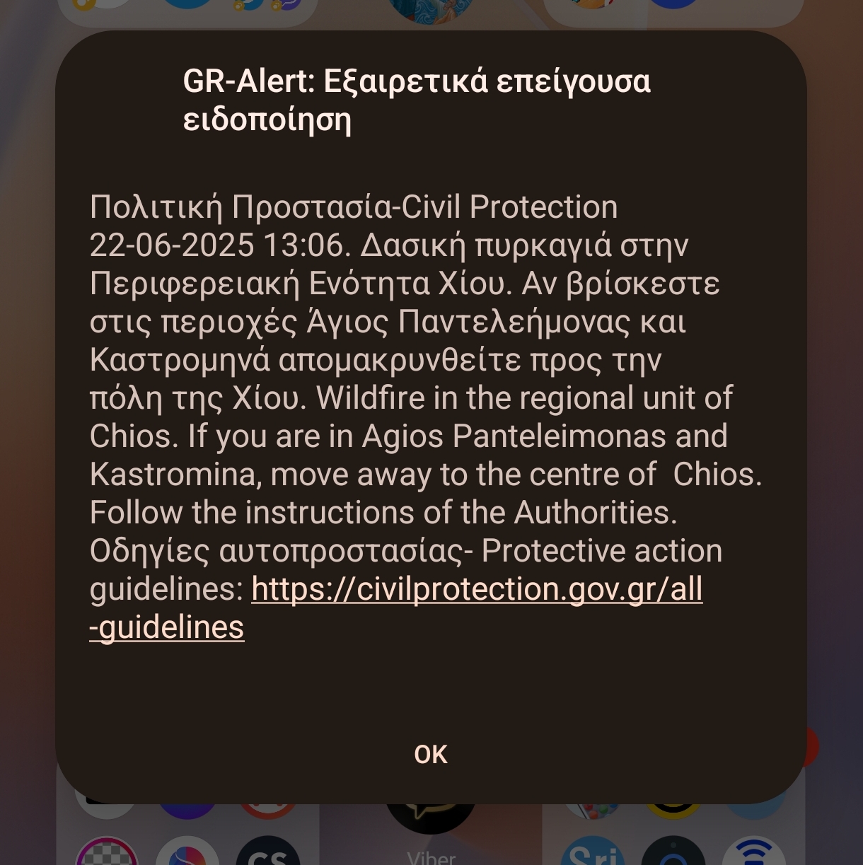 📢 Ενεργοποιήθηκε εκ νέου το 112, με νέα προειδοποίηση που αφορά τώρα και την περιοχή Καστρί (Καστρομηνάς).