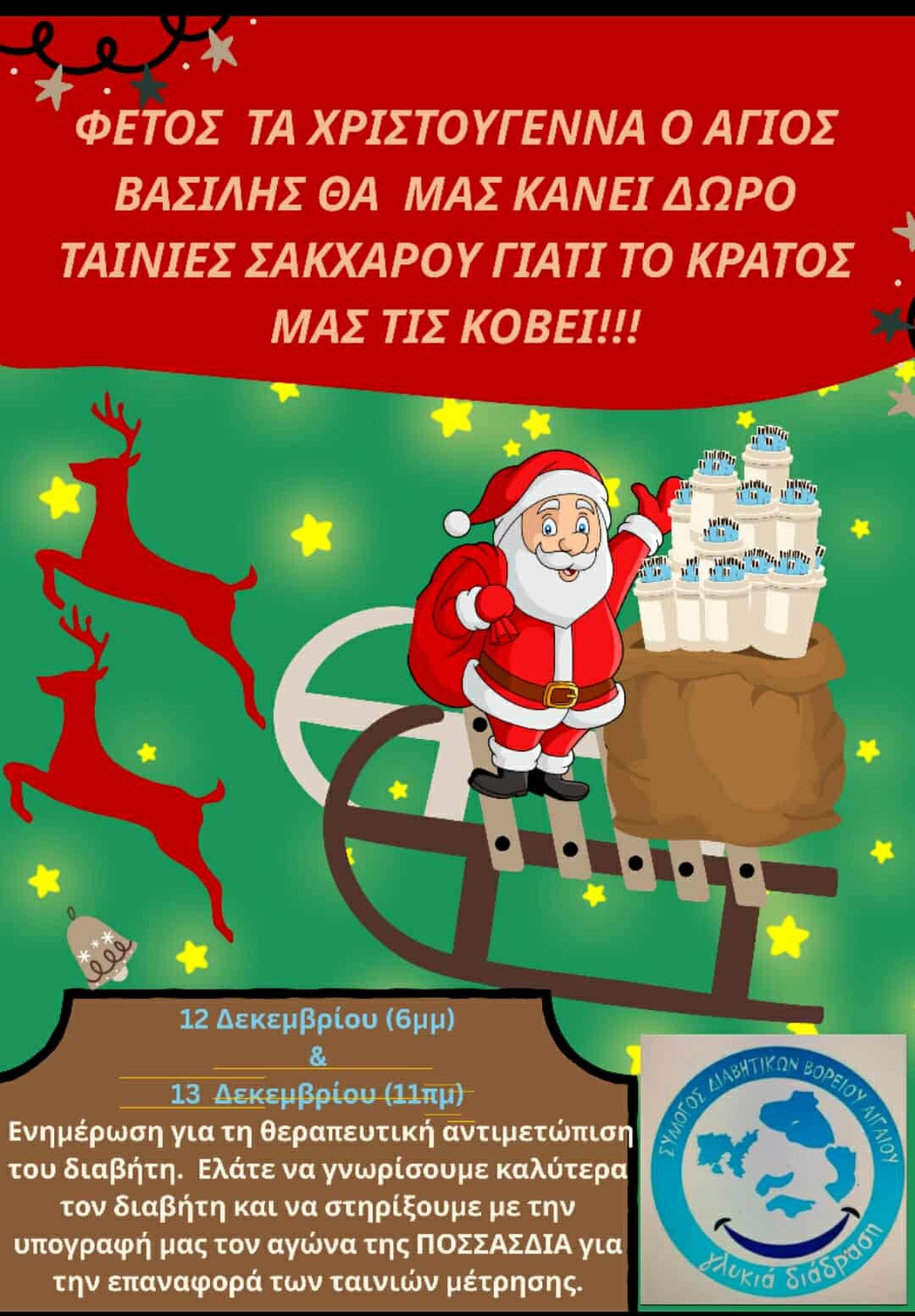 Ο Σύλλογος Ατόμων με Διαβήτη Βορείου Αιγαίου ‘’Γλυκιά Διάδραση’’ εκφράζει τη βαθιά ανησυχία του σχετικά με τη διακοπή/ανάκληση ταινιών μέτρησης γλυκόζης που παρατηρείται το τελευταίο διάστημα και η οποία έχει αφήσει χιλιάδες άτομα με σακχαρώδη διαβήτη σε κατάσταση ανασφάλειας.