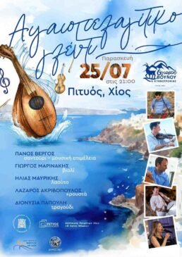 Σάββατο 26/7: Βραδιά με Μικρασιάτικα, Πολίτικα και Αρχιπελαγίτικα τραγούδια με το σχήμα Αστραγέρι, ενώ το χορό ανοίγουν οι Σύλλογοι Μεσοτόπου Λέσβου και Πιτυούς.