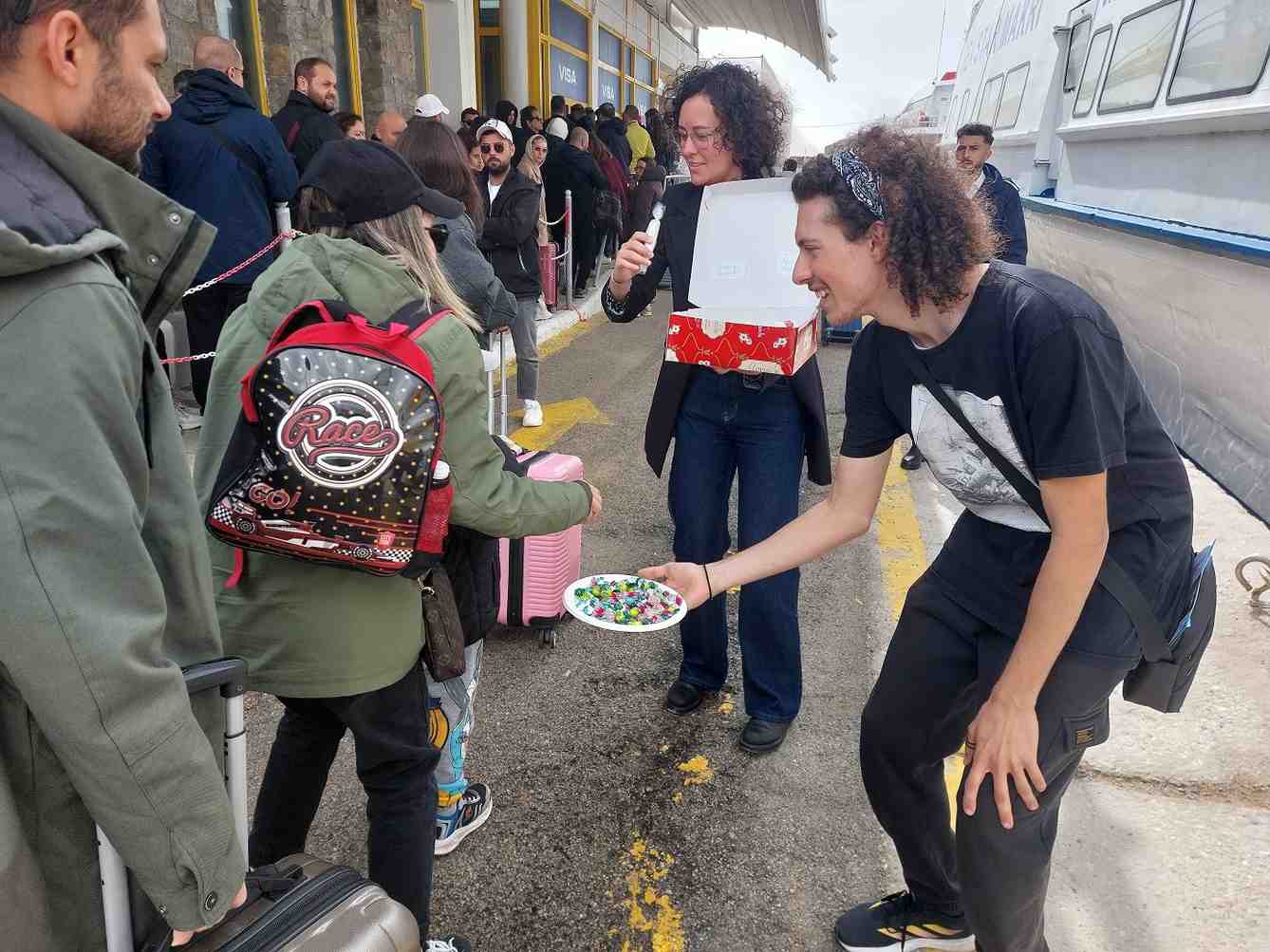 Οι εκπρόσωποι του Συλλόγου Ενοικιαζομένων Δωματίων και της Ένωσης Ξενοδόχων Χίου, με την υποστήριξη εθελοντών φοιτητών από το Τμήμα Μηχανικών Οικονομίας και Διοίκησης του Πανεπιστημίου Αιγαίου, υποδέχθηκαν θερμά τους επισκέπτες από την Τουρκία στον χώρο του τελωνείου της Χίου. Στη διάρκεια της υποδοχής, προσφέρθηκαν παραδοσιακά κεράσματα και πληροφορίες για το νησί, δίνοντας στους επισκέπτες τη δυνατότητα να γευτούν τοπικά προϊόντα και να μάθουν για τα κυριότερα αξιοθέατα του νησιού.