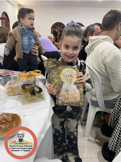 Ξεχωριστή στιγμή της βραδιάς αποτέλεσε η χαρά της μικρής Ελευθερίας-Μαρκέλλας Μίχαλου, η οποία στάθηκε η μεγάλη τυχερή, βρίσκοντας το φλουρί από τα πιτάκια που μοιράστηκαν στους παρευρισκόμενους. Το χαμόγελό της και ο ενθουσιασμός της γέμισαν την αίθουσα συγκίνηση, καθώς παρέλαβε το μεγάλο δώρο της βραδιάς: τη χειροποίητη εικόνα της Αγίας Μαρκέλλας, το γούρι του συλλόγου και ένα γεύμα στο «Στου Μάρκου» στην Παρπαριά.