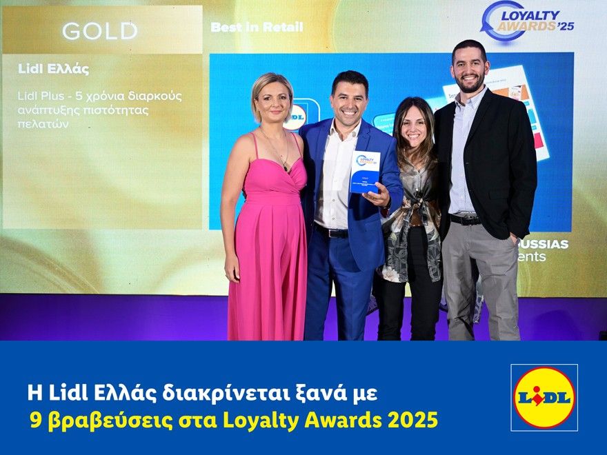 Σε μια εποχή που η εμπειρία του πελάτη επαναπροσδιορίζεται μέσα από την τεχνολογία, την καινοτομία και την αυθεντική σύνδεση, η Lidl Ελλάς αποδεικνύει για ακόμη μία χρονιά ότι βρίσκεται στην αιχμή των εξελίξεων. Στα Loyalty Awards 2025, η Lidl Ελλάς απέσπασε 9 σημαντικές βραβεύσεις, επιβεβαιώνοντας τη δέσμευσή της να προσφέρει μια εξέχουσα, προσωποποιημένη και ουσιαστική εμπειρία αγορών στους πελάτες της.