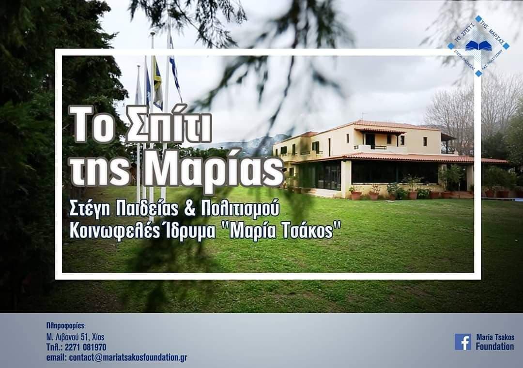 Η Μαθητική Στέγη Καρδαμύλων «Το Σπίτι της Μαρίας – Στέγη Παιδείας και Πολιτισμού» ιδρύθηκε το 2013 από την οικογένεια του Καπτ. Παναγιώτη Ν. Τσάκου στη μνήμη της κόρης του Μαρίας και σε υλοποίηση ενός από τα οράματα της. Ανήκοντας οργανικά στο Κοινωφελές Ίδρυμα «Μαρία Τσάκος» – Διεθνές Κέντρο Ναυτικής Έρευνας και Παράδοσης, η Στέγη έχει αναδειχθεί σε υψηλού επιπέδου σύγχρονο κοινωνικό, εκπαιδευτικό και πολιτιστικό πυρήνα ζωής μέσα στα πλαίσια της κοινωνίας της Χίου γενικά και των Καρδαμύλων, ειδικώτερα.
