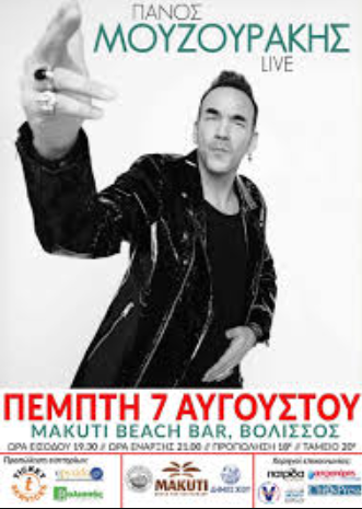 Στη Χίο, την Πέμπτη 7 Αυγούστου, ο δημοφιλής καλλιτέχνης Πάνος Μουζουράκης θα εμφανιστεί ζωντανά στο Makuti Beach Bar, στη Βολισσό.