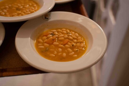 Την παράσταση «έκλεψε» η Σούπα Φασολάδας με Χιώτικο μανταρίνι, από παραδοσιακή συνταγή, η οποία μαγειρεύτηκε με αποκλειστικά προϊόντα της Χίου, από τον Χιώτη μάγειρα Δημήτρη Μανωλάκη και ήρθε στην Μυτιλήνη την ημέρα του δείπνου. Επίσης το μενού περιελάμβανε ελιές θρούμπες Χίου, Μασουράκια Χίου και λικέρ μαστίχας, με τους καλεσμένους να μένουν εντυπωσιασμένοι από την