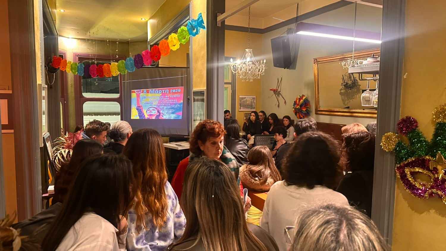 Δεκάδες γυναίκες ,όλων των ηλικιών ανταποκρίθηκαν στο κάλεσμα του Συλλόγου Γυναικών Χίου και απόλαυσαν το μουσικο-αφηγηματικό αφιέρωμα «όσα λένε τα τραγούδια» μια ελεύθερη κατάδυση στους γυναικείους αγώνες του χθες ,ορόσημα για την δράση του σήμερα και τη νικηφόρα πορεία του αύριο , στο ζεστό και κατάμεστο χώρο του καφέ-Ρόδι, την Κυριακή 8 Μάρτη 2026.