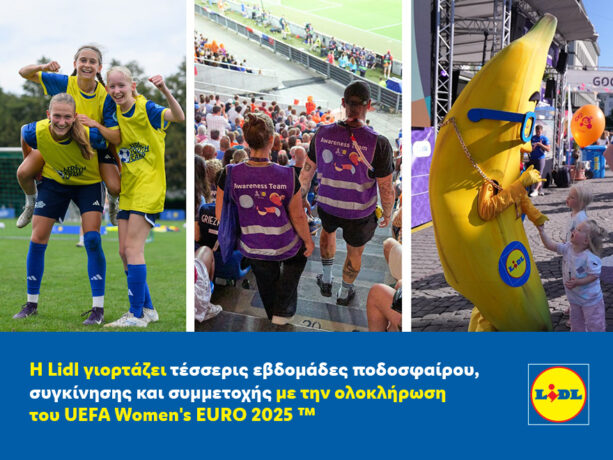Καθώς πέφτει η αυλαία του ιστορικού UEFA Women’s EURO 2025, με την Αγγλία να στέφεται ξανά πρωταθλήτρια Ευρώπης, η Lidl γιορτάζει ένα επιτυχημένο καλοκαίρι γεμάτο ποδόσφαιρο, ενότητα και θετικό αντίκτυπο στις κοινότητες. Η Lidl ήταν περήφανη που συμμετείχε σε ένα κίνημα που ενέπνευσε εκατομμύρια κοινό, έθεσε νέα πρότυπα στον γυναικείο αθλητισμό και ανέδειξε τη δύναμη της συνύπαρξης, της υγείας και του σεβασμού. Με 657.291 φιλάθλους να παρακολουθούν τους αγώνες σε οκτώ πόλεις φιλοξενίας, πάνω από 400 εκατομμύρια τηλεθεατές παγκοσμίως και τη μεγαλύτερη πορεία φιλάθλων στην ιστορία του γυναικείου ποδοσφαίρου…
