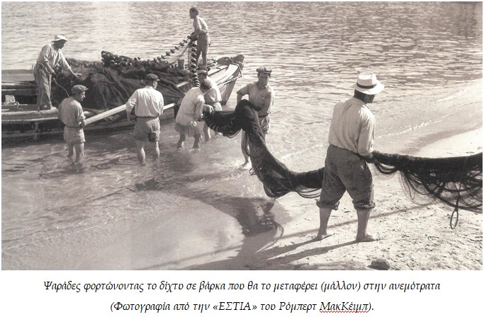 Αλλά, αγαπητοί αναγνώστες, επειδή νομίζω ότι βγήκα εκτός θέματος (ενώ ξεκίνησα να περιγράψω τους ψαράδες του τόπου μου), φθάσαμε… αισίως… μέχρι την Αργεντινή. Έτσι, επανέρχομαι στα… καθ’ημάς πηγαίνοντας στη σελίδα 151 του βιβλίου και αντιγράφοντας τη διαίρεση του συγγραφέως11: «Α. Σκάφη που αλιεύουν με στατικά εργαλεία, Β. Σκάφη που αλιεύουν με συρόμενα εργαλεία (π.χ. ανεμότρατες), Γ. Σκάφη που αλιεύουν με κυκλικά δίχτυα (π.χ. τα γρι-γρί)».