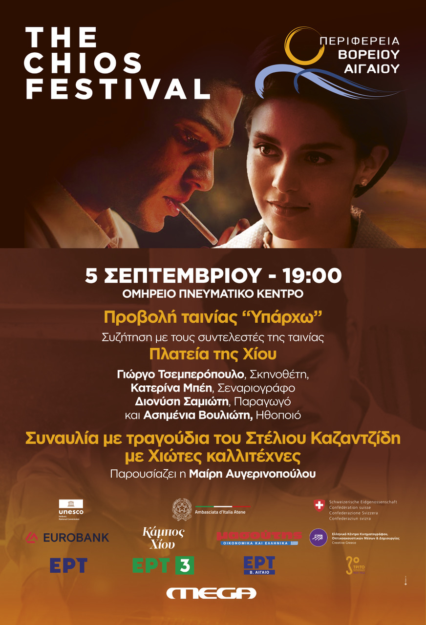 Η βραδιά είναι αφιερωμένη στον ανεπανάληπτο Στέλιο Καζαντζίδη και συνδυάζει κινηματογράφο, μουσική και ζωντανό διάλογο με δημιουργούς. Το πρόγραμμα ξεκινά στις 19:00, στο Ομήρειο Πνευματικό Κέντρο, με την προβολή της ταινίας «Υπάρχω». Ακολουθεί στην Πλατεία Χίου ανοιχτή συζήτηση με τους συντελεστές: τον Χιώτη σκηνοθέτη Γιώργο Τσεμπερόπουλο, τη σεναριογράφο Κατερίνα Μπέη, τον παραγωγό Διονύση Σαμιώτη και την ηθοποιό Ασημένια Βουλιώτη.
